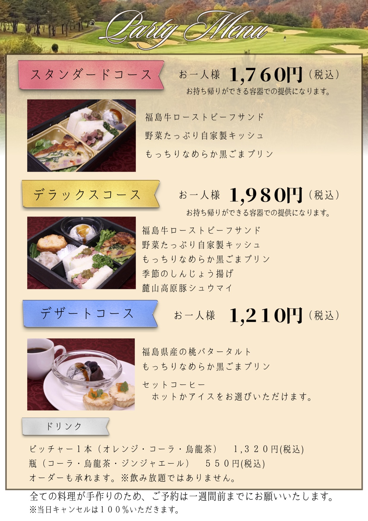 レストランメニュー|猪苗代のゴルフ場:ボナリ高原ゴルフクラブ